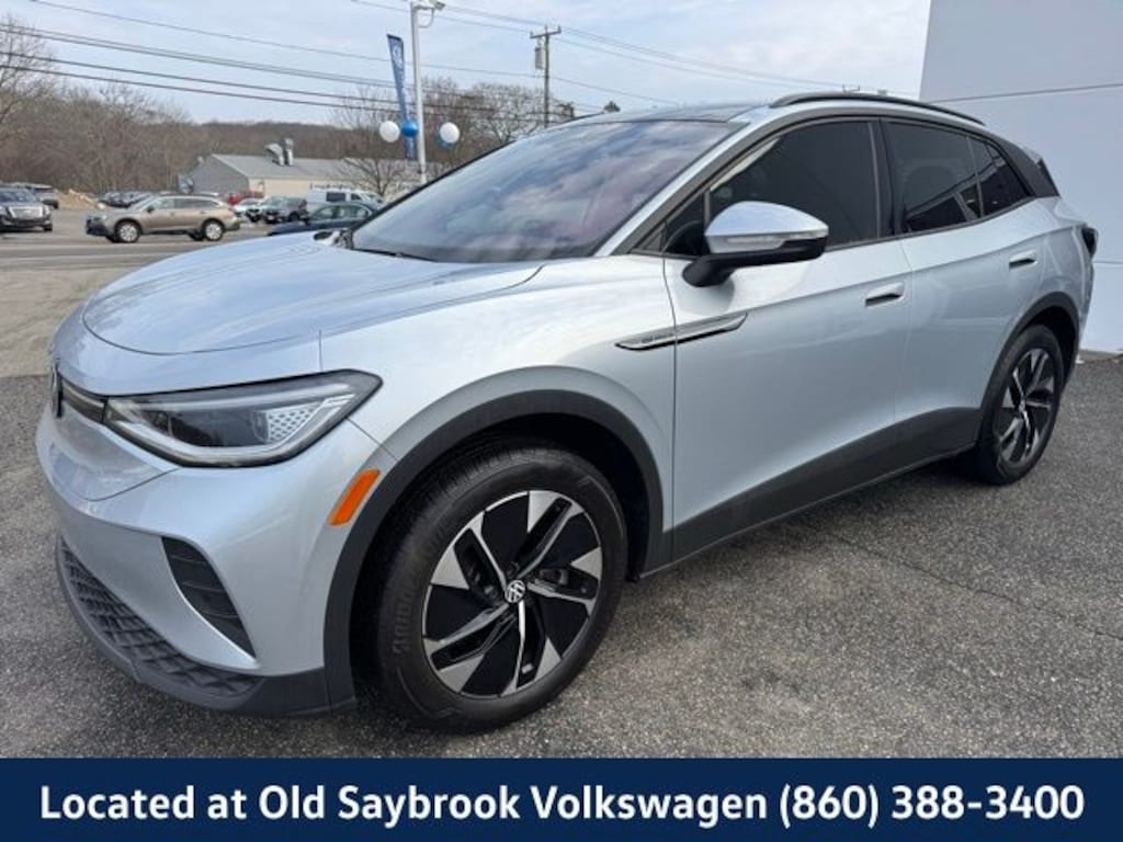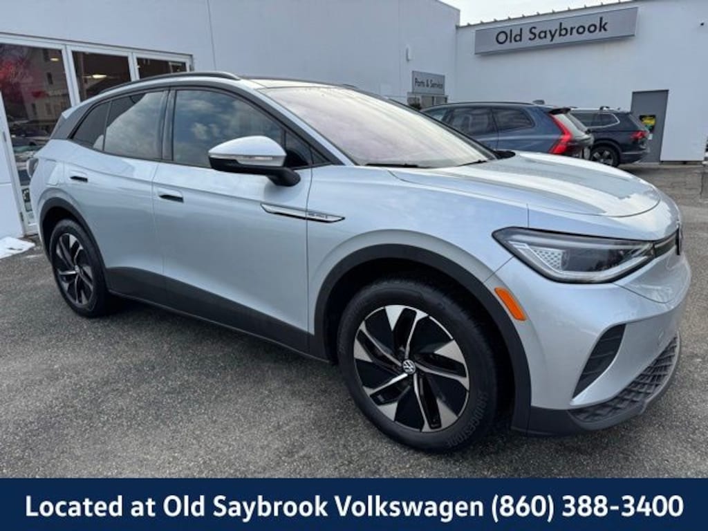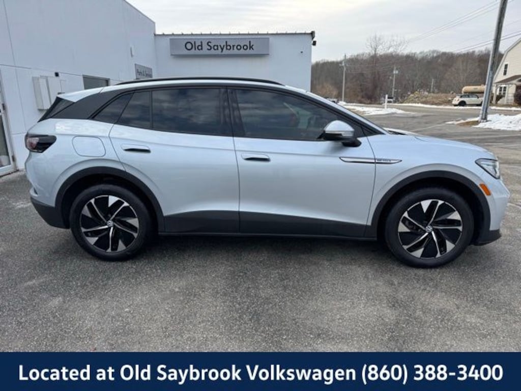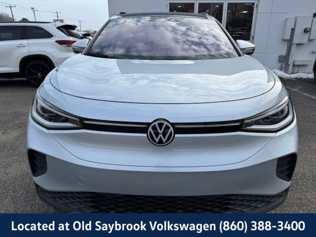 VW CERTIFIED 2 Year/24,000 Mile Warranty, Located at Old Saybrook Volkswagen, Nationwide Delivery Available!!, Panoramic Glass Roof, Qualifies for all Rebates and Incentives!, ID.4 Pro S Statement, 4D Sport Utility, AWD, 4 Wheel Independent Suspension, Black Roof, Brake assist, Electronic Stability Control, Emergency communication system: VW Car-Net services (capabilities require enrollment or subscription), Exterior Parking Camera Rear, Four wheel independent suspension, Gradient Package, Heated door mirrors, Heated Front Seats, Heated front seats, Heated steering wheel, Illuminated entry, Memory seat, Navigation System, Power driver seat, Power Liftgate, Power passenger seat, Silver Accents on Front & Rear Bumpers, Wheels: 19" 5-Spoke 2-Tone Machined Alloy, Wheels: 20" Dynamic Design Machined Alloy. CARFAX One-Owner. Certified. Scale Silver Metallic 2022 Volkswagen ID.4 Pro S Statement AWD Single-Speed Automatic Electric Motor