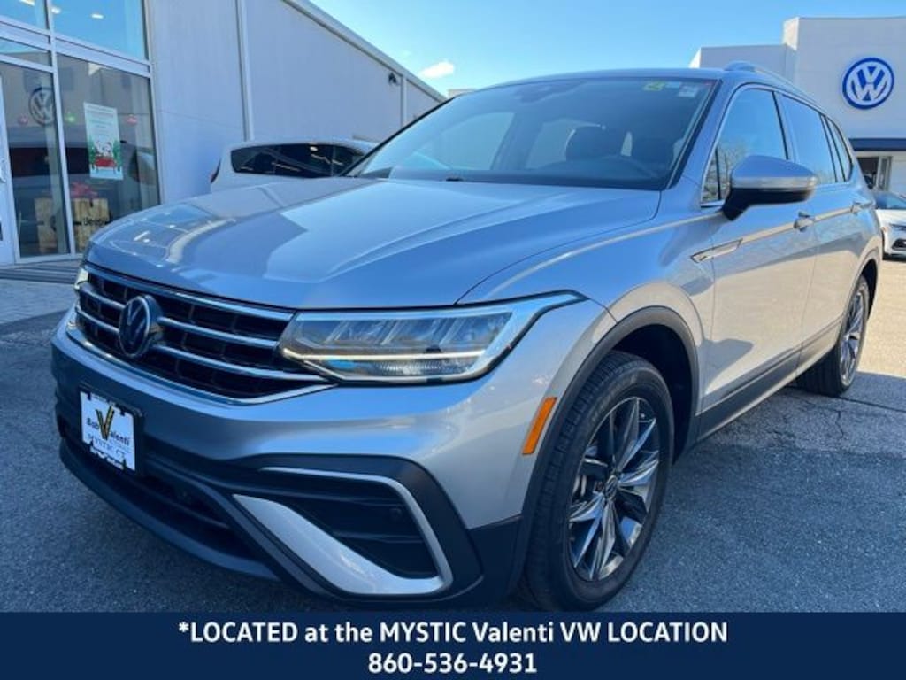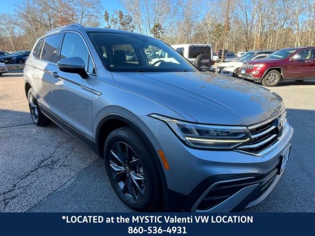 VW CERTIFIED 2 Year/24,000 Mile Warranty, Located at our Mystic VW location, AWD, Panoramic Sunroof Package. CARFAX One-Owner. Clean CARFAX. Silver Metallic 2023 Volkswagen Tiguan 2.0T SE AWD 8-Speed Automatic with Tiptronic 2.0L TSI DOHC