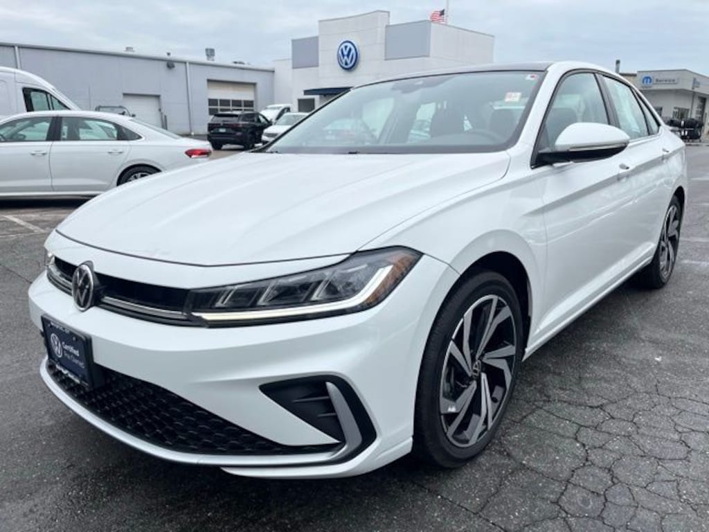 VW CERTIFIED 2 Year/24,000 Mile Warranty, Located at our Mystic VW location, Leather. CARFAX One-Owner. Clean CARFAX. White 2025 Volkswagen Jetta 1.5T SEL FWD 8-Speed Automatic with Tiptronic 1.5L I-4 DI DOHC Turbocharged