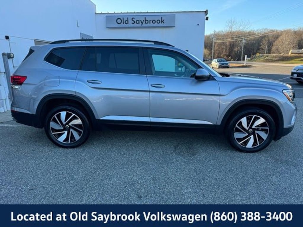 VW CERTIFIED 2 Year/24,000 Mile Warranty, Located at Old Saybrook Volkswagen, Nationwide Delivery Available!!, Atlas 2.0T SE w/Technology, 4D Sport Utility, 2.0L TSI, 8-Speed Automatic, AWD, 20" 2-tone machined alloy wheels, 3rd row seats: split-bench, 4-Wheel Disc Brakes, Brake assist, Electronic Stability Control, Exterior Parking Camera Rear, Four wheel independent suspension, four-wheel independent suspension, heated and Actively ventilated front bucket seats, Heated front seats, Heated steering wheel, Illuminated entry, perforated V-Tex leatherette seating surfaces, Power Liftgate, Ventilated front seats. CARFAX One-Owner. Clean CARFAX. Certified. Silver 2025 Volkswagen Atlas 2.0T SE w/Technology AWD 8-Speed Automatic 2.0L TSI